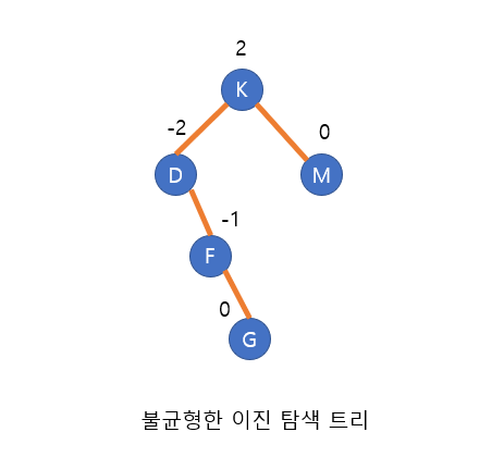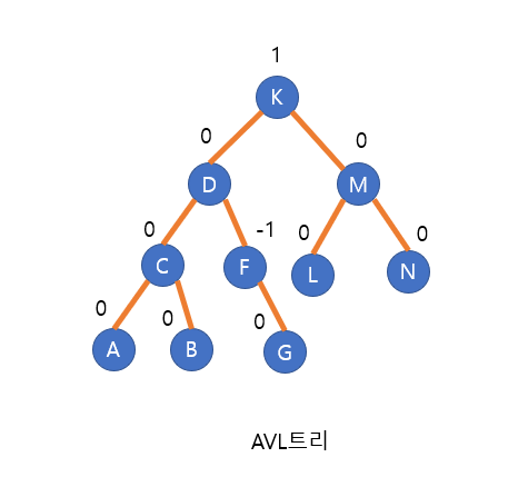 이진 탐색 트리 내의 임의의 노드 N에 대해서 균형 인수 BF(N)가 -1, 0, 또는 1만의 값을 갖는다면 이 이진 탐색 트리를 AVL트리라 한다.