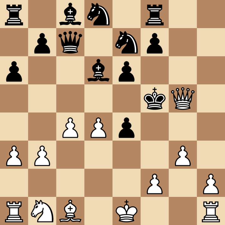 체스를 두다가 다음과 같은 포지션이 나왔다. 이때 나는 체크메이트를 하는 수순을 못봐서 체크메이트를 하지 못하고 질질 끌었다. 있을 것 같았는데 못 찾아서 끝나고 분석으로 통해 체크메이트 수순을 알았다.