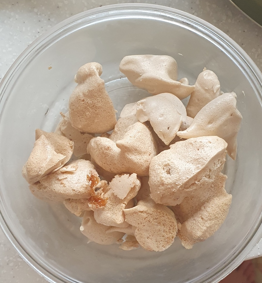 남은 계란 흰자로는 머랭쿠키를 만들어 보았다. 에어프라이기가 작아서 여러번 나누어서 구웠는데 머랭을 상온에 계속 뒀더니 조금씩 기포가 생겼다. 머랭치기가 잘 안되서 그럴 수도 있겠다. 그래도 처음치고는 맛은 있었다. 근데 설탕들어가는 양을 보니 조금 무섭긴하다.