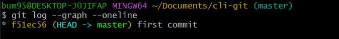 git log --graph --oneline을 입력하면 로컬 저장소의 커밋 내용을 볼 수 있다.