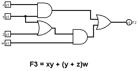 이 회로도는 3-레벨(three-level)로 구성된 회로이다. F3를 표준형식으로 바꾸려면 분배법칙을 통해 괄호를 없애야 한다.
