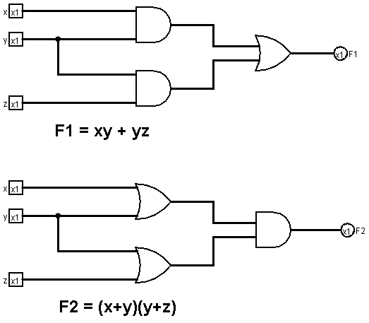 함수 F1과 F2를 각각 회로도로 나타내면 다음과 같다.