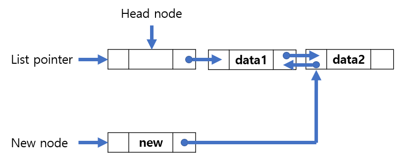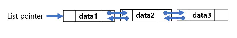 이중 연결 리스트(doubly linked list)는 기존 단순, 원형 연결 리스트의 단점인 단방향 흐름을 2개의 링크 필드를 이용하여 양방향으로 움직일 수 있게 만든 것이 이중 연결 리스트이다. 원형 연결 리스트에 이중 연결 리스트를 결합하면 이중 원형 연결 리스트가 된다. 이중 연결 리스트는 양방향으로 움직일 수 있어 데이터 접근이 단순, 원형 연결 리스트보다 쉽고 삽입, 삭제 연산시 선행 노드에 대한 정보가 필요없다는 장점이 있다. 이중 연결 리스트의 노드는 다음과 같다.