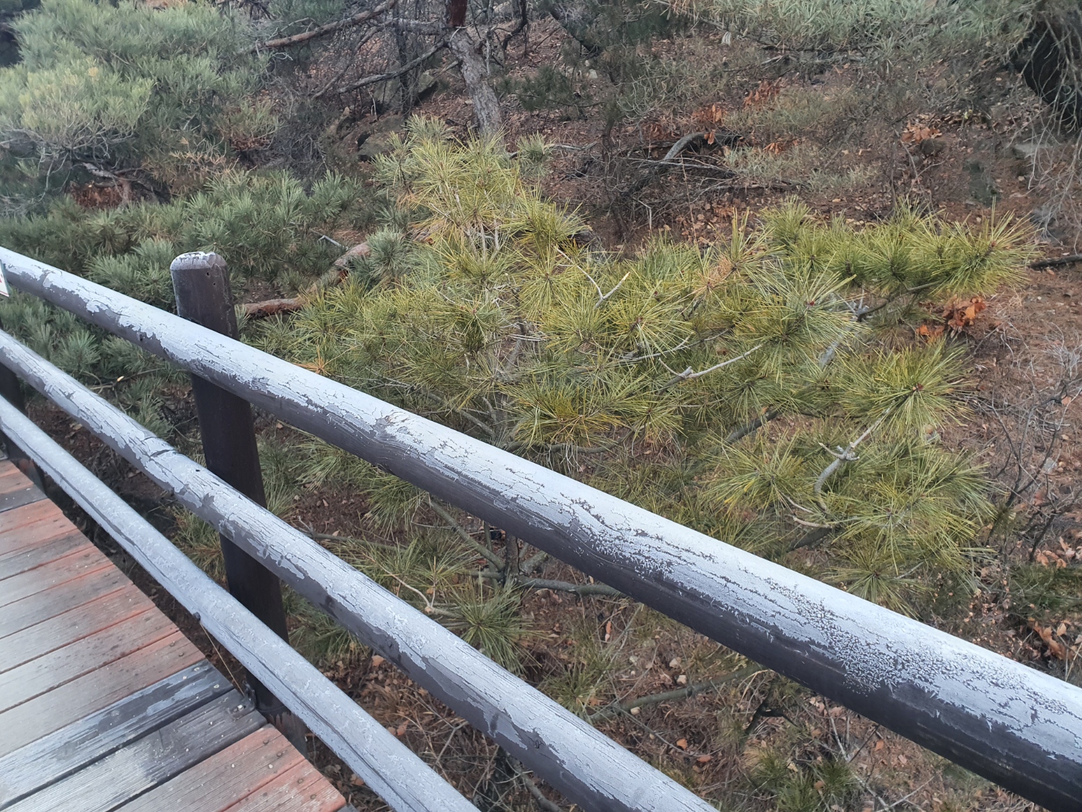 아래 사진은 갔다온지는 좀 됬지만 지금까지 가장 일찍 간 산을 찍은 사진이다. 추워서 그런지 난간도 서리가 내렸다.