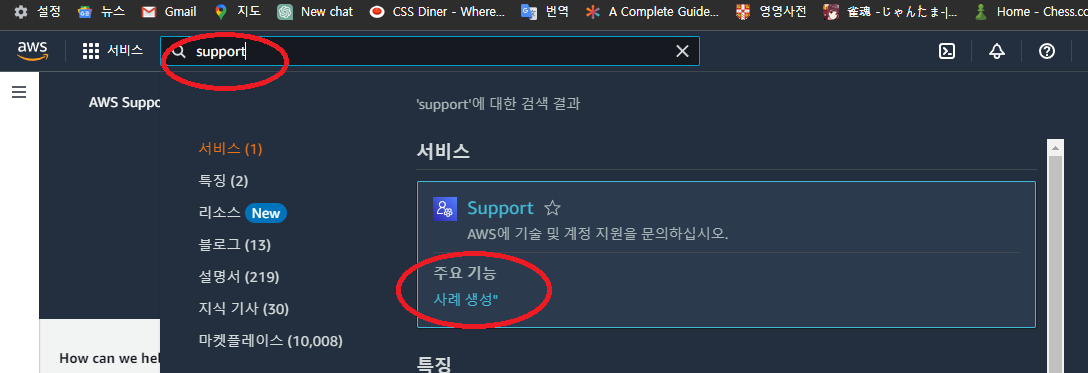 오늘 AWS 계정에 문제가 생겨서 어떻게 문의를 할까하다가 채팅이나 이메일로 문의를 할 수 있다길래 해보았다. 혹시나 영어가 무서워서 문의를 못하는 나같은 쫄보가 있을 것같아서 영어 못하는 쫄보가 한 번 문의하는 과정을 보여주겠다. 먼저 aws 계정에 로그인한다. 그러면 위에 검색할 수 있는 곳이 나오는데 여기다 support를 입력하고 사례 생성을 누른다. 그러면 아래와 같은 화면이 나오는데 자신의 상황에 맞게 문의 사항을 고른다. 필자같은 경우, 계정 활성화 관련해서 문제가 있었기에 다음과 같이 선택했다. 만약 단어를 모른다면 파파고라는 좋은 친구가 있다! 다 선택을 했다면 밑에 next step을 누른다. next step을 누르면 간단한 문제 설명 사항이 나오는데 subject에는 문제를 한줄로 ..